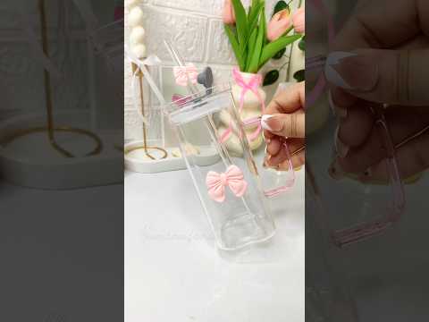 كوب زجاجي مع مصاصة زجاجية وغطاء وحافظة حماية من الجلد